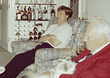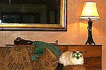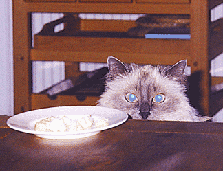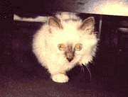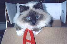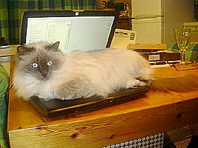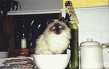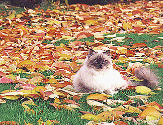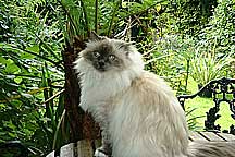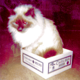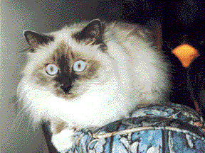 | My name is Pip and I lived to be a 21 year old female Birman. For a while, I was the oldest living recorded Birman in Europe. The multiplier for cat to convert to a human age is complicated. The 1st year of a cat's life counts 21. The 2nd counts 10 and every year thereafter counts 3. So that makes me ... er er um um 49. I'm a woman not a mathematician, what do you expect? My date of birth was on the 7th April (I was born in 1990). You can check out my pedigree here. There have been two men in my life. Man 1 writer James, who gave me my name. He's a fan of Charles Dickens, hence Pip, after Philip Pirrip in Great Expectations. I don't mind the male nickname, because my real name, licenced with the Fancy Cat Society, is Sabatini Santamorra. I am of course, descended from the acclaimed Stretford Santamorras and I got my first name because I was registered during Wimbledon Week in 1990. When Man 1 sold up and moved to Brighton, he sold me to a neighbour, Man 2, Robin Marshall, who looked after me until . . . |